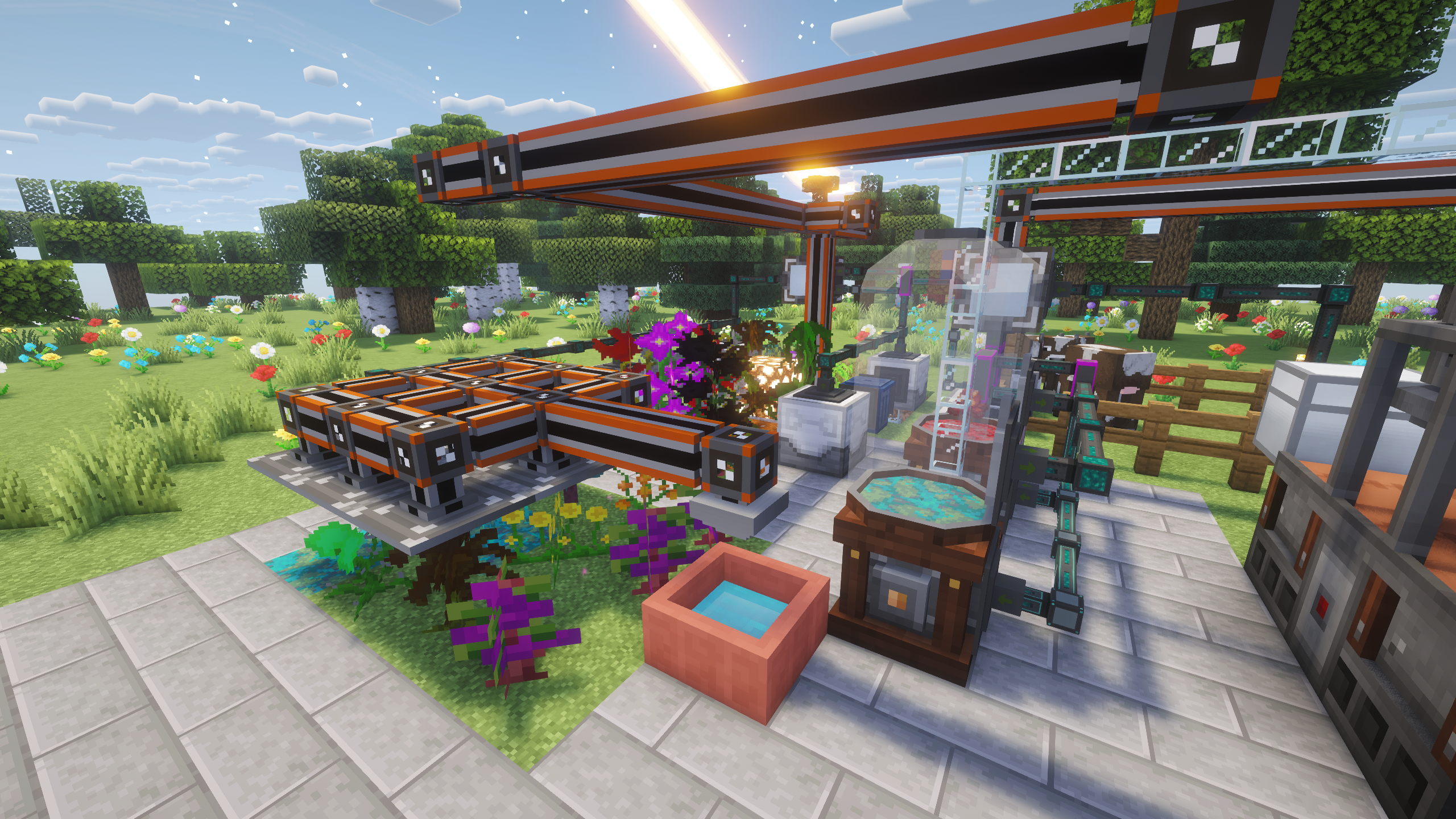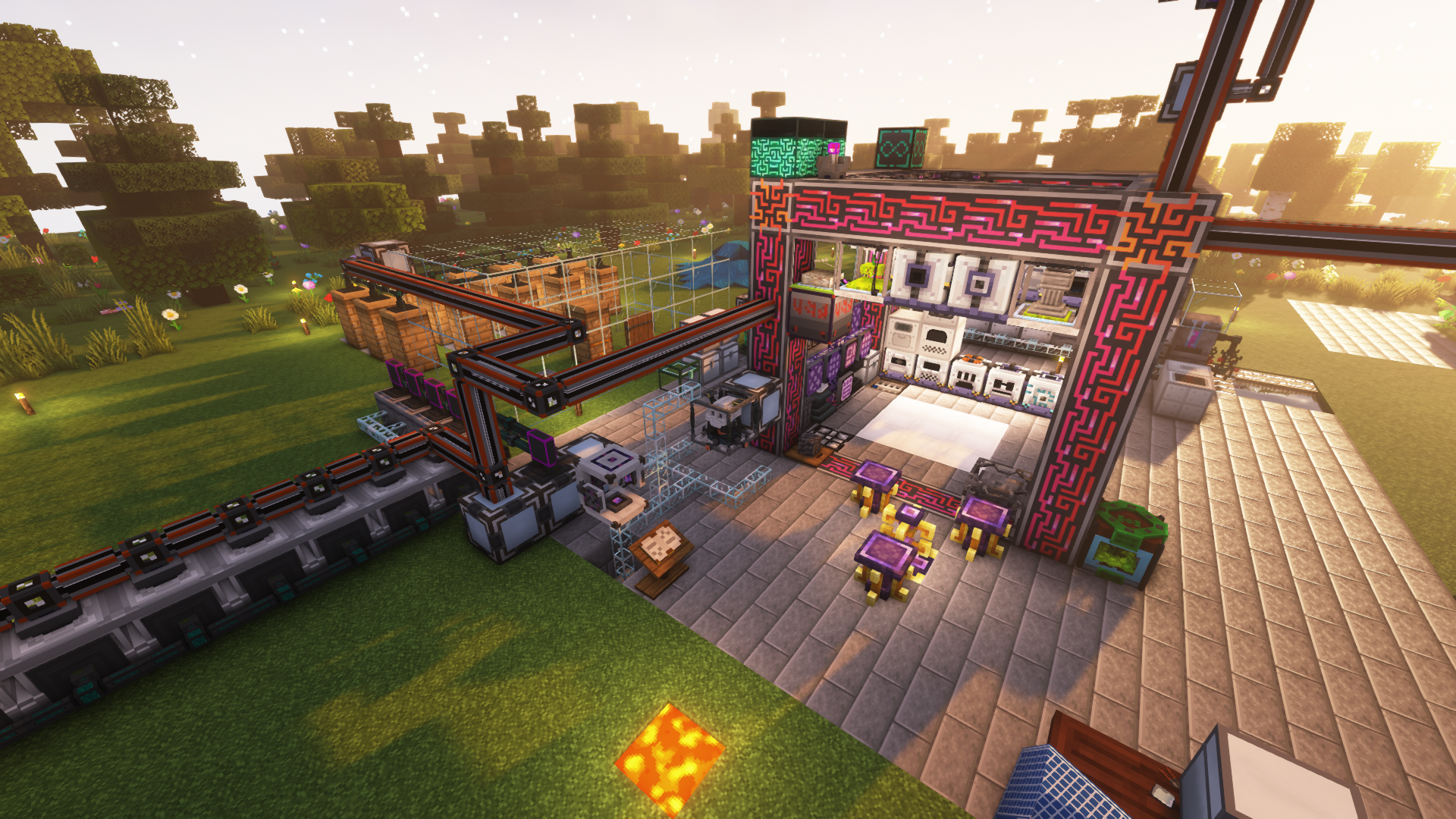 Интегрирующие механики нашей самописной модификации GravityExpansion соединяют моды между собой, а также добавляют интегрированные с МЭ сетью механизмы, например в моде Botania вам больше не потребуются огромные столбы с однотипными механизмами - достаточно поставить один блок, через который вы сможете крафтить предметы прямо в МЭ сети.